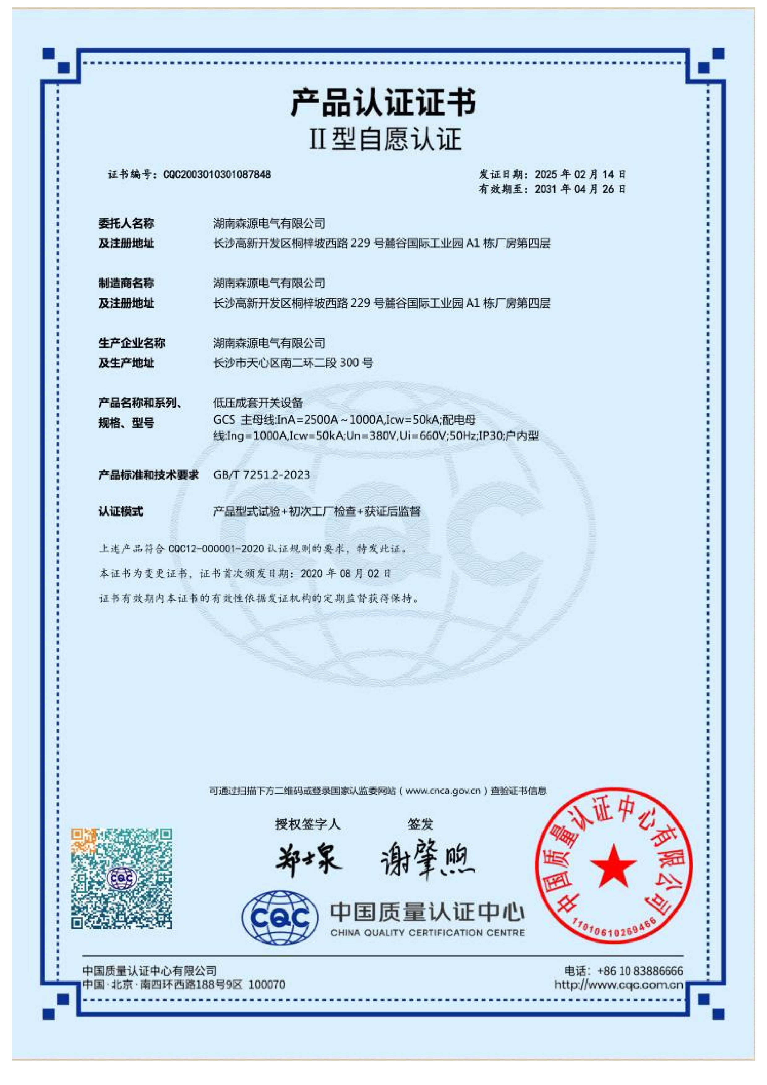 低压成套开关设备GCS-Ⅱ型自愿认证
