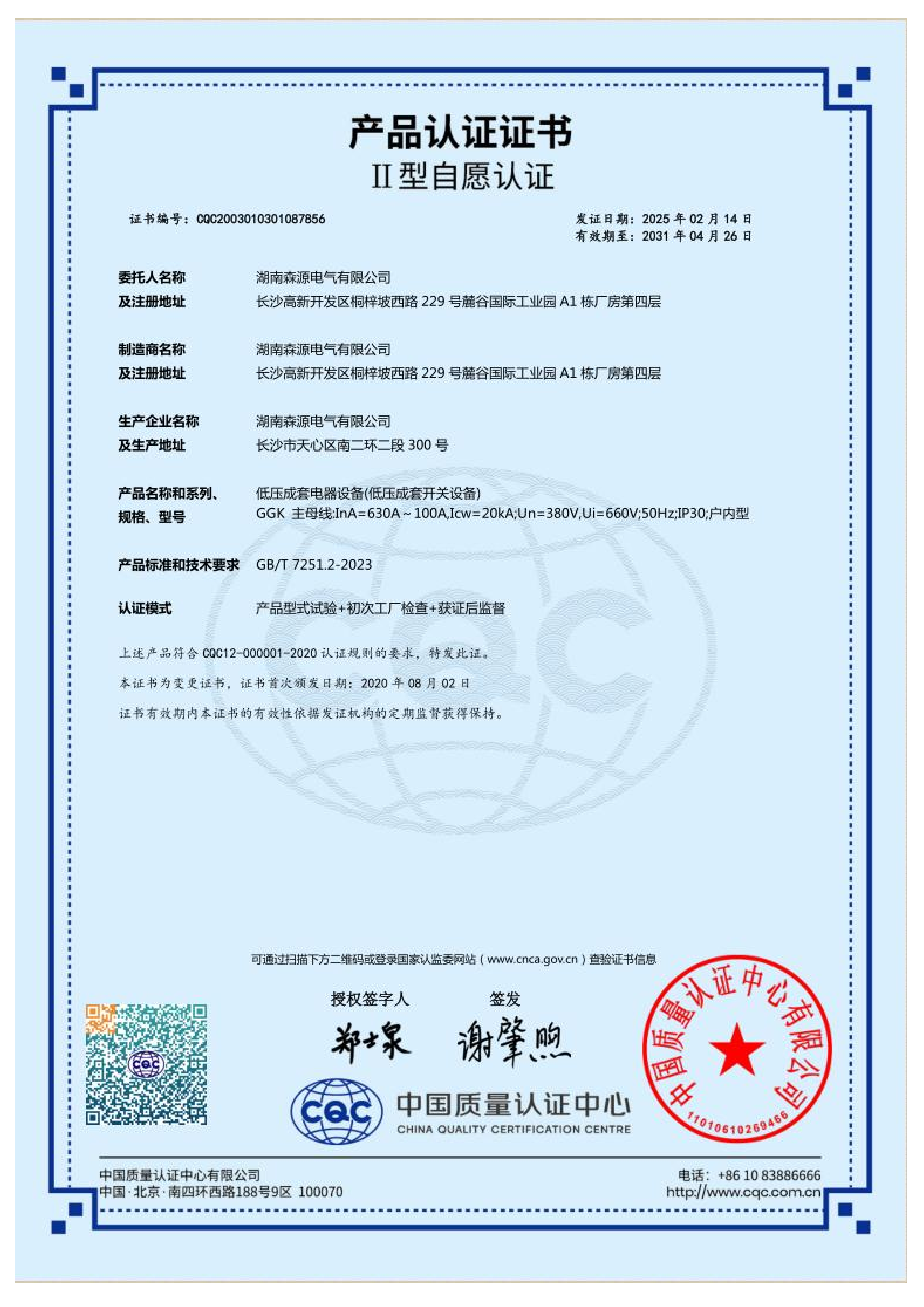 低压成套开关设备GCK-Ⅱ型自愿认证