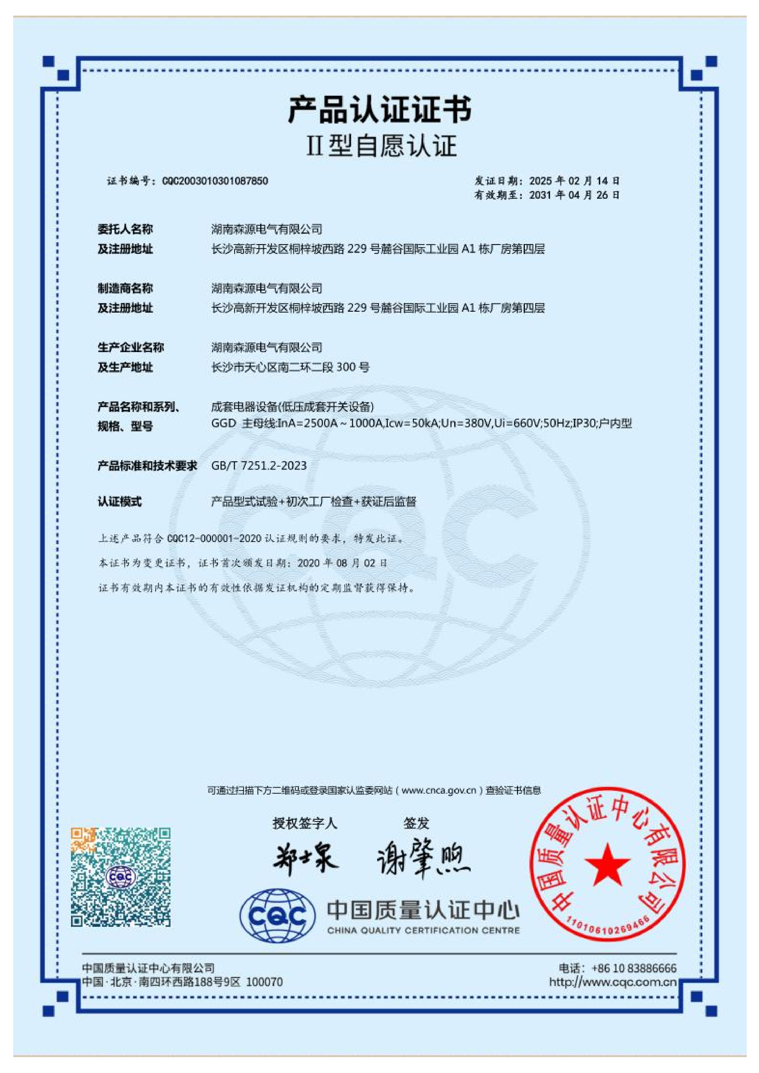 成套电器设备(低压成套开关设备)GGD-ⅡI型自愿认证